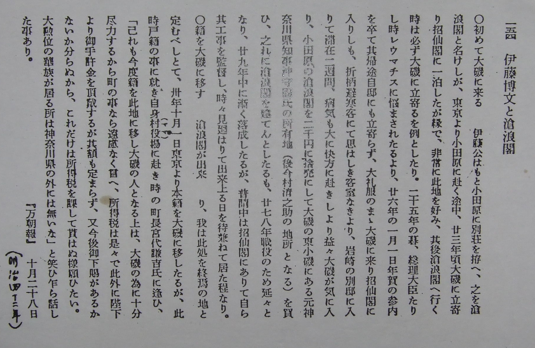 滄浪閣とは大磯にある伊藤博文の晩年の私邸。