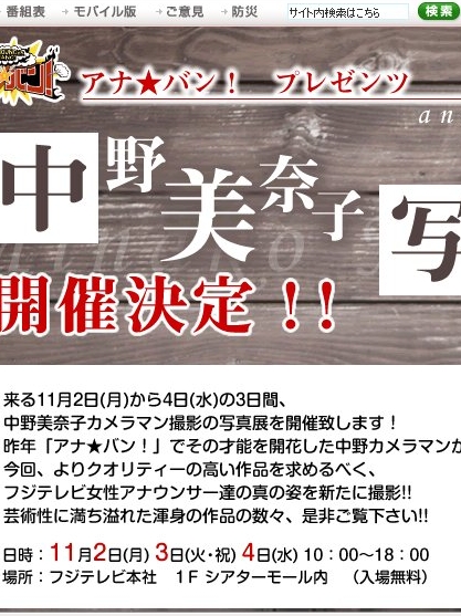 ・アナ★バン! - フジテレビ写真展告知ページ